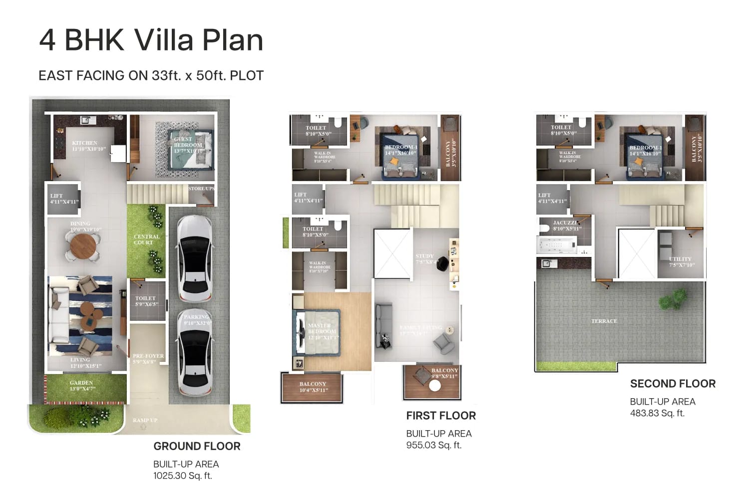 Experience the perfect blend of personal space and open surroundings at Oxyrich’s 3 & 4 BHK villas in Chandapura, inspired by Mediterranean architecture. These bright, airy homes come with skylit kitchens, mezzanine lounges, and open-to-sky showers—offering luxury, light, and layered privacy. The thoughtful layout ensures every corner is functional, beautiful, and relaxing, with high-end finishes that truly elevate your living experience.