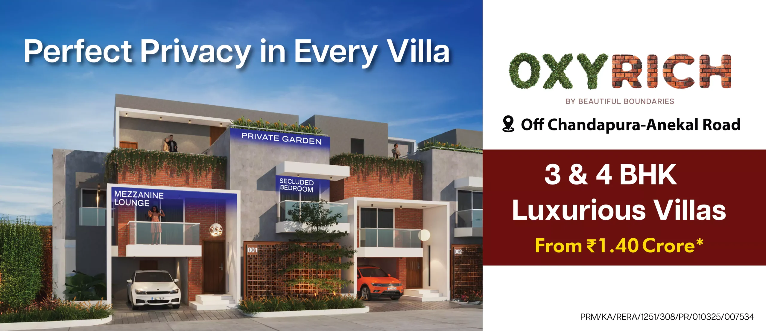 Discover Oxyrich Villas: 3 & 4 BHK Villas in Chandapura Designed for Privacy and Luxury